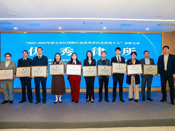 2026年1月12日下午,“2022-2025年度宝安区律师行业优秀单位及优秀个人”表彰大会暨区律工委2025 年终总结会议隆重召开。广东宝城(宝安)律师事务所荣获2022-2025年度宝安区“优秀律师事务所”称号,宝城(宝安)所共有初岱、郑平进、吴敏玲、曾婵媛、张帅帅、杨洁、黄诗艾等7名律师获得奖项。