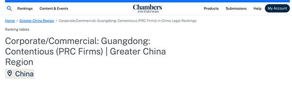 钱伯斯(Chambers and Partners)是国际最权威、最有影响力的法律评级机构之一。钱伯斯榜单被业界视为最高法律评级标准。